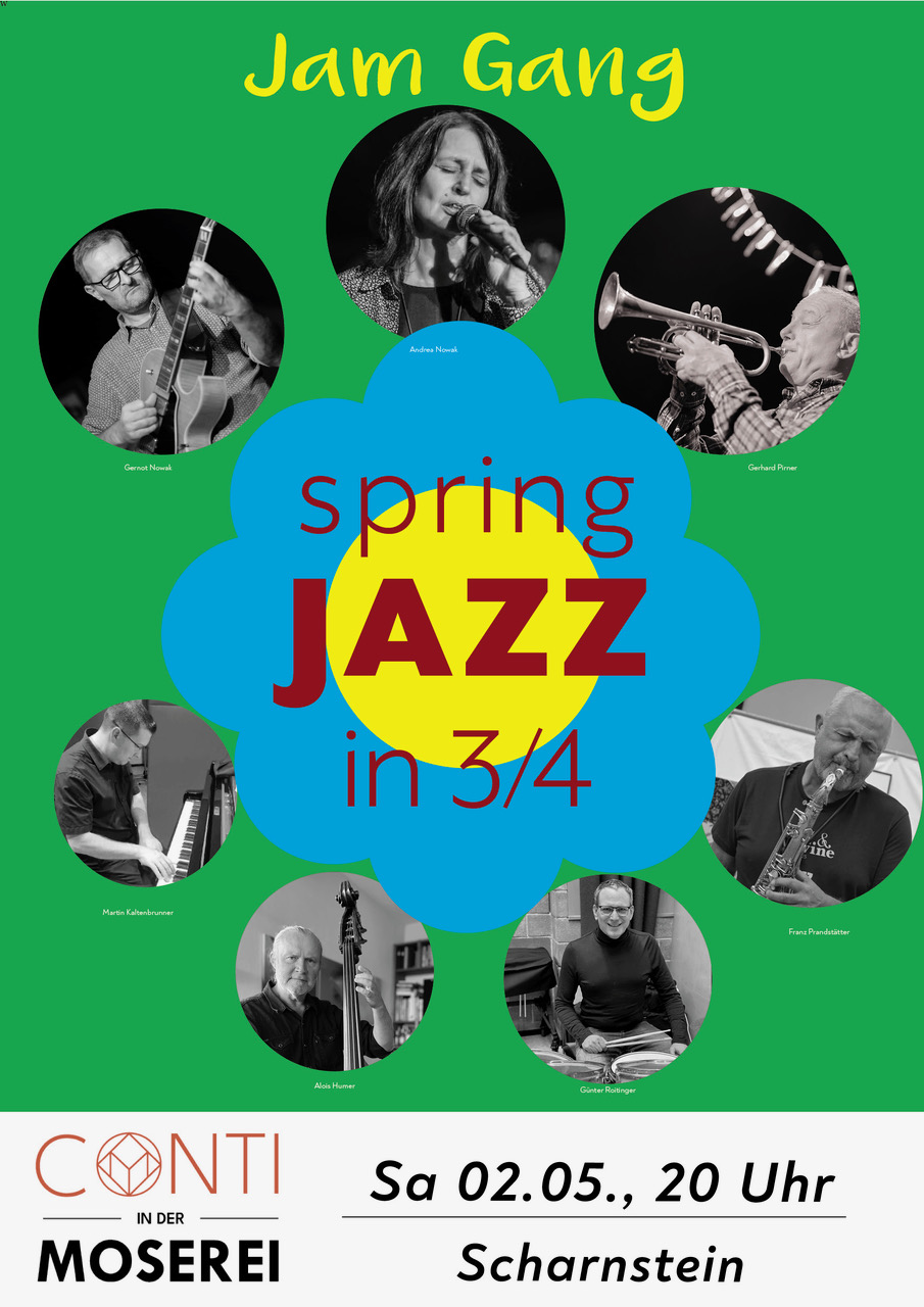 Die Jam Gang ist in Frühlingsstimmung! Und in diese Stimmung passen klassisch swingende Nummern genauso wie beschwingter Jazz-Waltz. Sozusagen Tanz in den Mai - nur cooler. Ein Programm mit viel guter Laune, passend zur Jahreszeit.